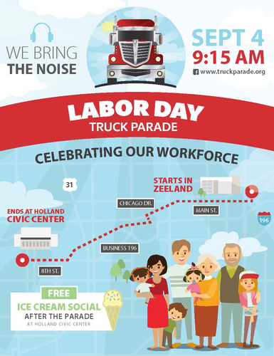 Make some noise for the businesses and workers of West Michigan! Bring the family, earplugs, and an appetite for big trucks, ice cream and giveaways! Give a few hours of your Labor Day to honor and celebrate our local workforce which has built one of the best places to live in the entire country!